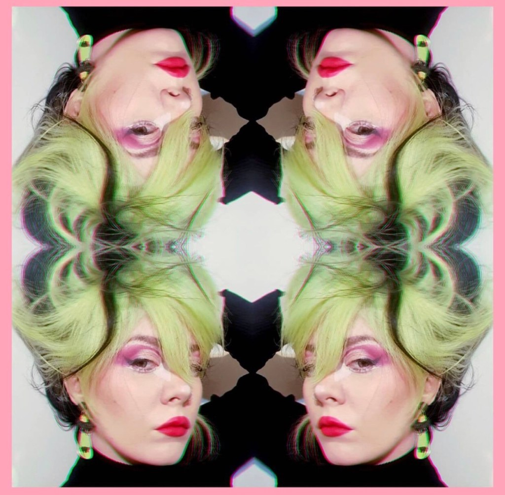 I found an image (selfie) that interested me by a local musician/artist who presents a vintage 60/70s style with make up, props, adornment etc. and used that to start on an illustration. She’s used a filter to turn the selfie into a multiple symmetrical image (don’t know what that’s called, there’s an app for that ofc.)