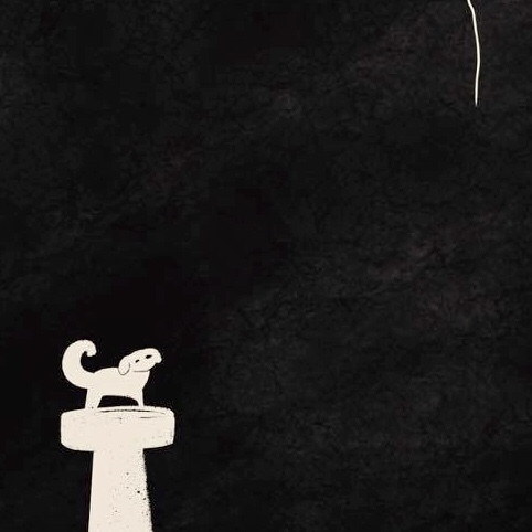 It’s a simple black and white illustration (actually black and beige to mimic paper colours) with elements that Beardsley used in some of his popular more illustrations (a statue, repetitive patterns) – and some more specific for this portrait (fairy lights, a Pekingese dog)