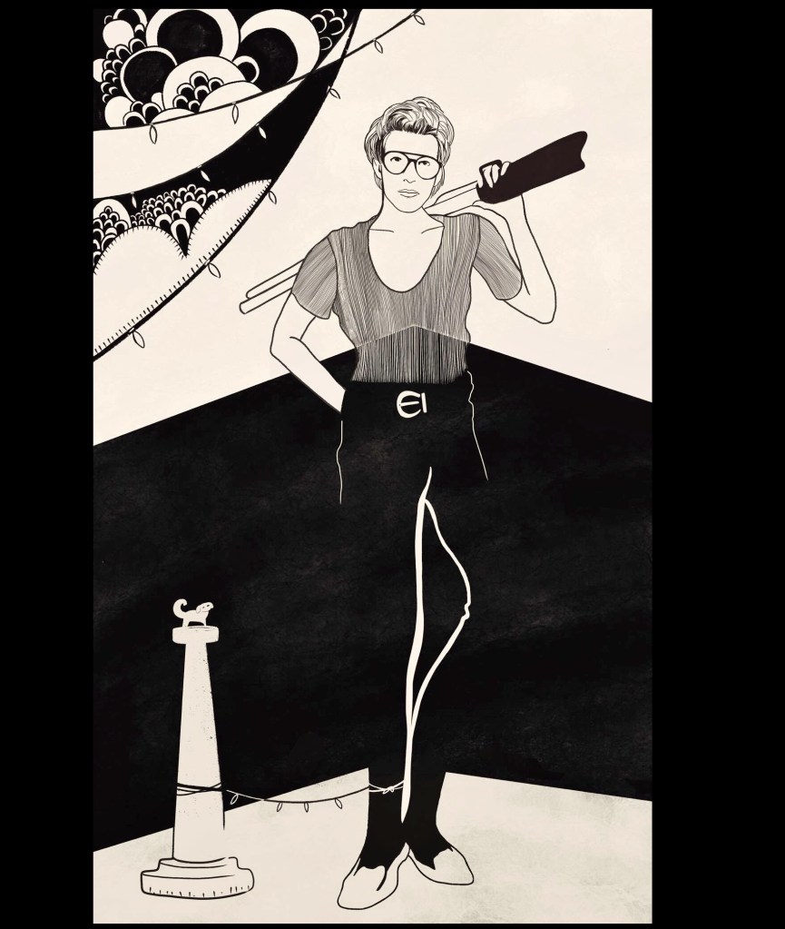 This is a portrait of local Teesside musician Micheal CG in the style of Aubrey Beardsley.