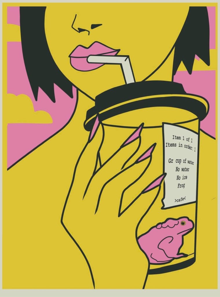 Retro ninties comic-book vintage advertising I call ‘hot girl cafe’ – I like this style, I’d love to animate it somehow, possibly using light boxes